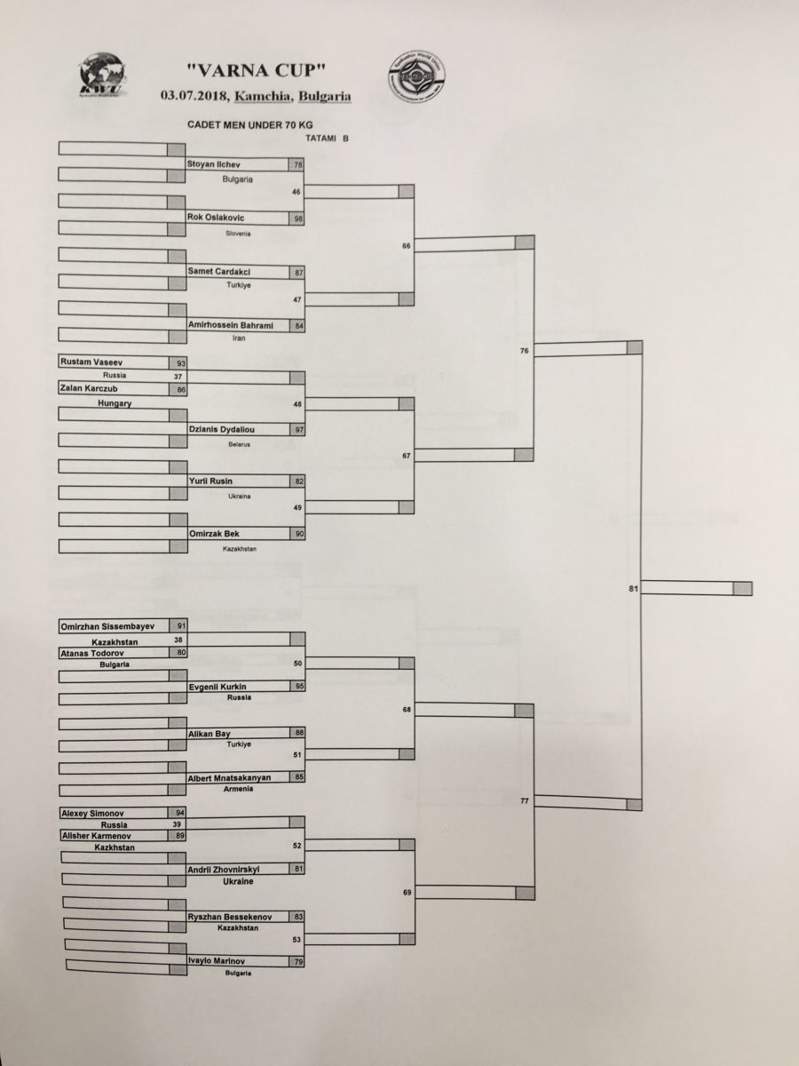 Cadets Men 18 – 21 years old: -60, -65, -70, – 75, -80, -85, +85 kg.