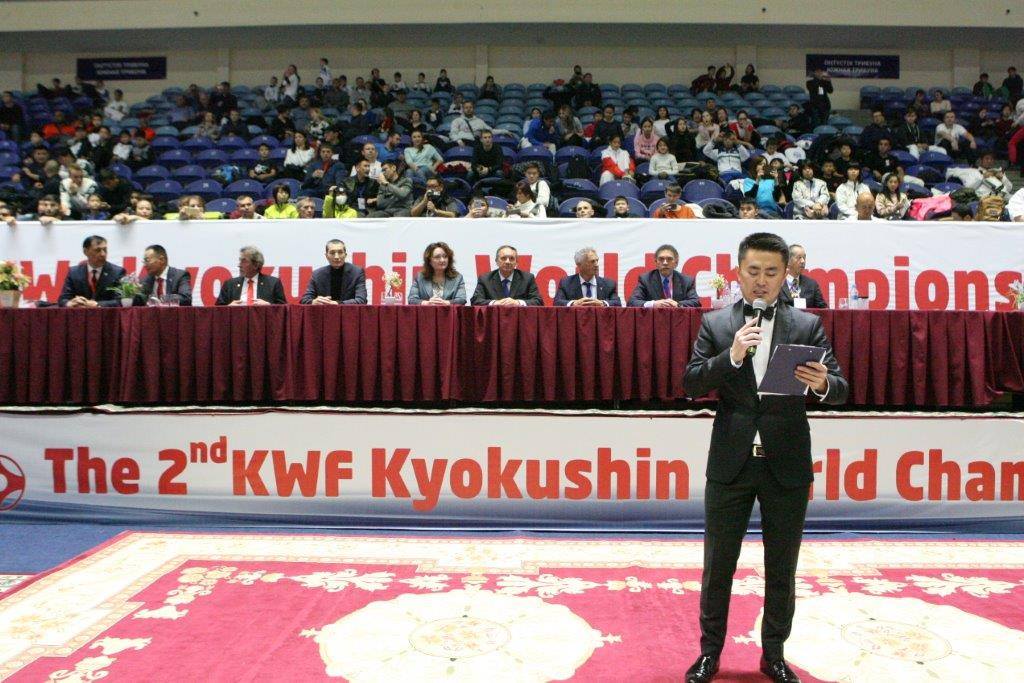 The official opening of the championships was made by the Department Director at the Ministry of Sport of Kazakhstan, the President of the Kyokushin World Federation Antonio Pinero, the General Secretary of the KWF Andre Drewniak, KWF Kazakhstan Representative Muktar Juldassov and the President of the KKF Irina Manzharova.